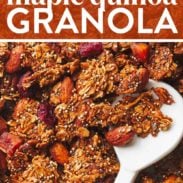 This recipe is republished with permission from The Well Plated Cookbook by Erin Clarke! It’s a super fun cookbook with fast, healthy, easy recipes – this maple quinoa granola being one of my favorites!